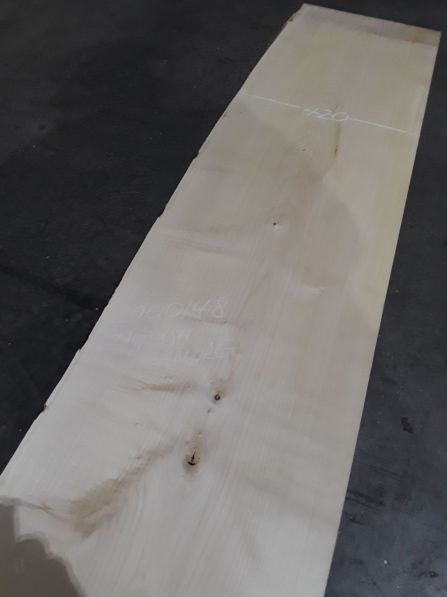 English Sycamore, one waney, one rough square edge, great colour and grain, planed on both faces, slight hit and miss
