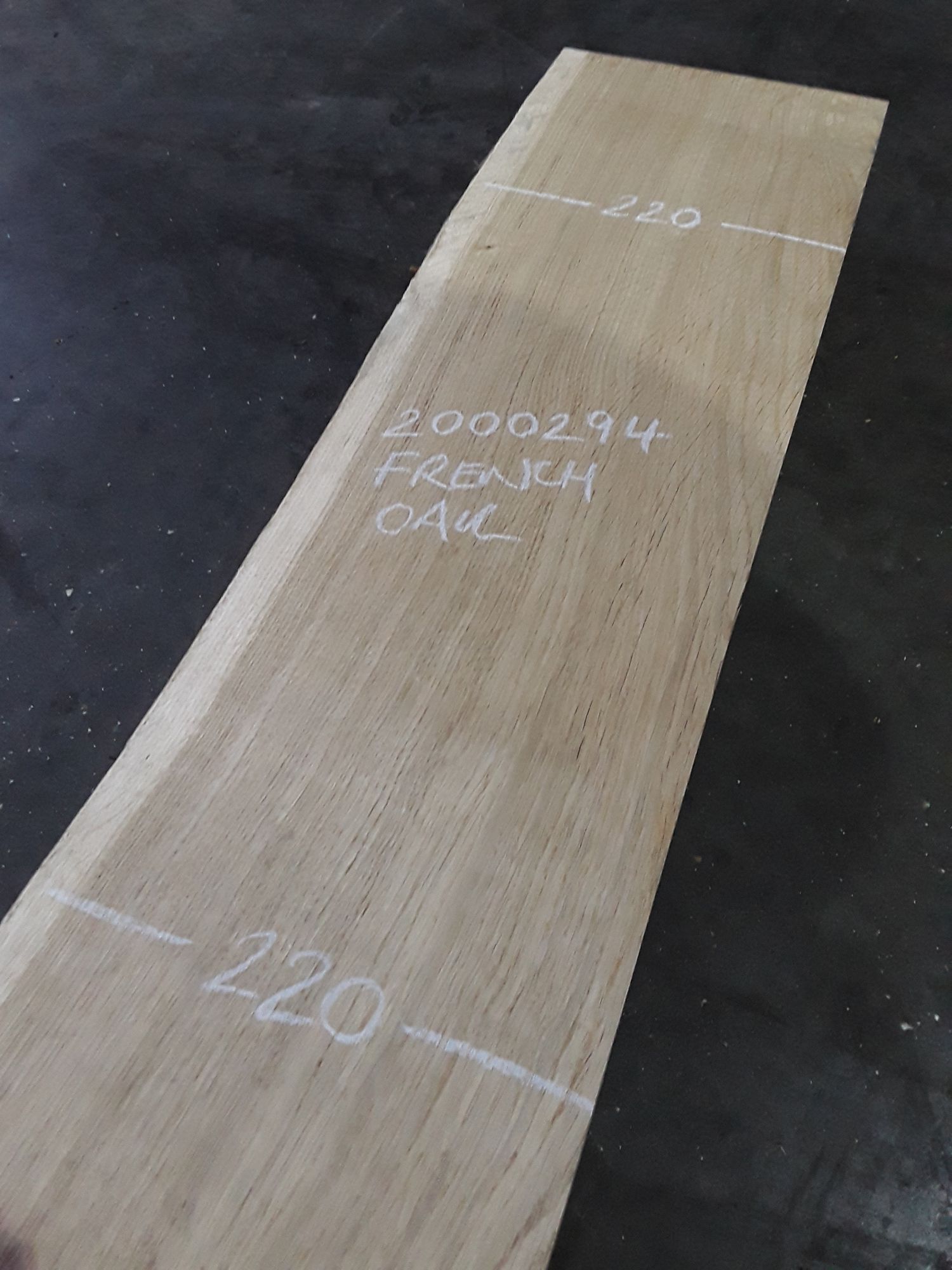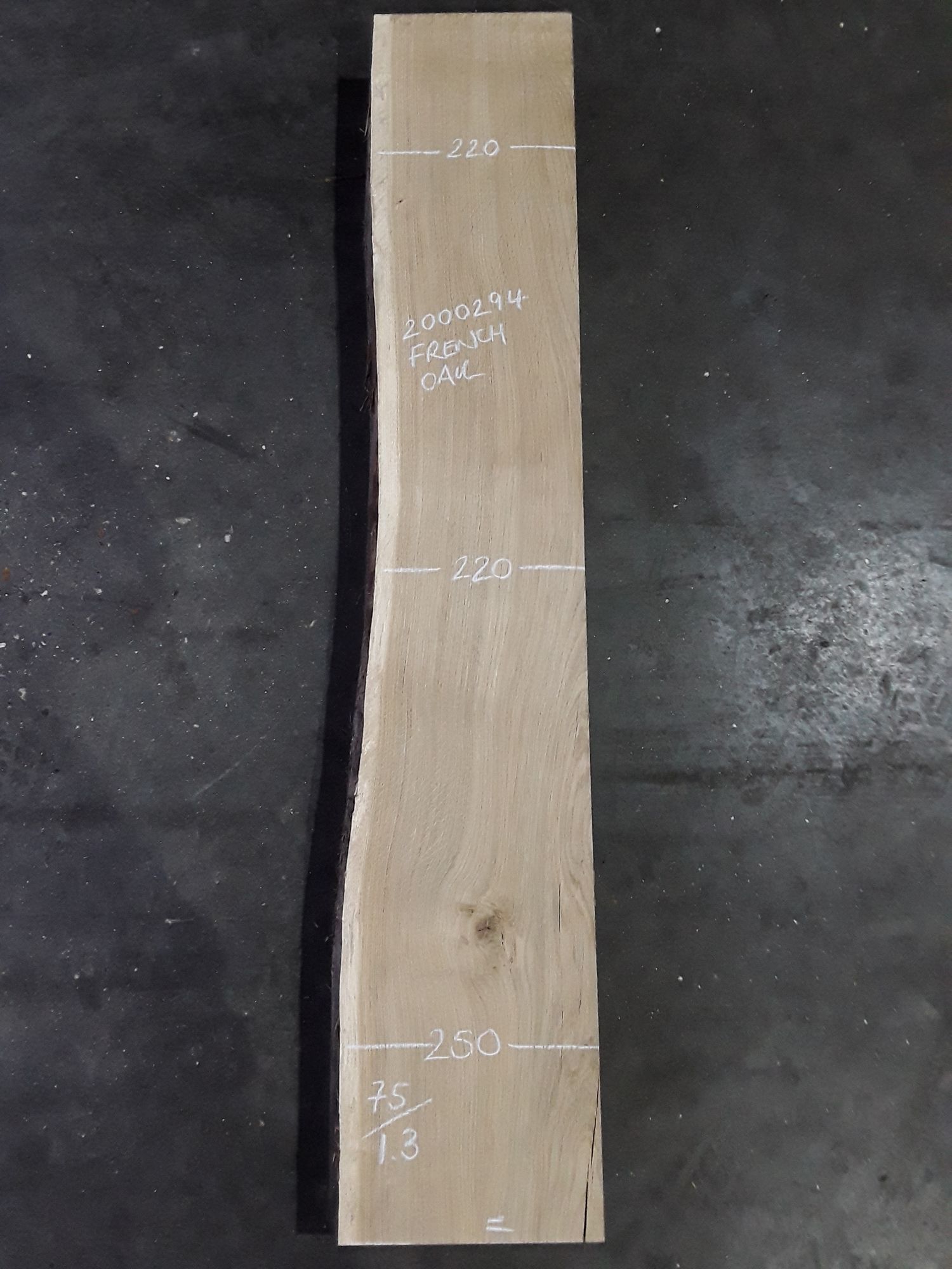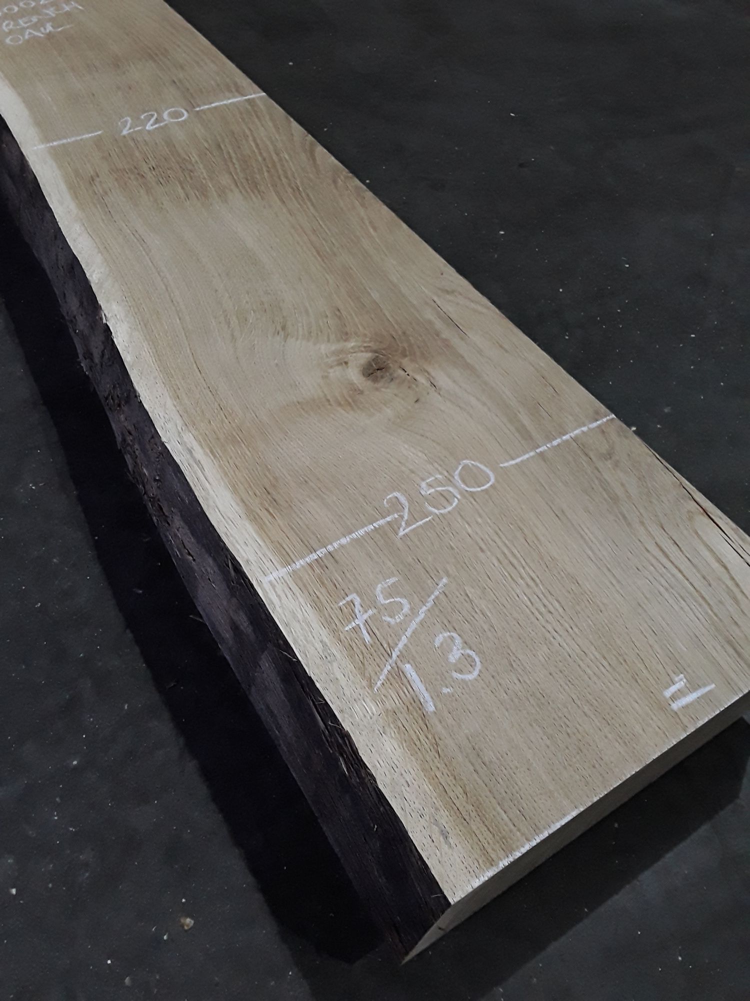 French oak, one waney, one square edge, perfect natural edge mantle, planed on both faces, slight hit and miss