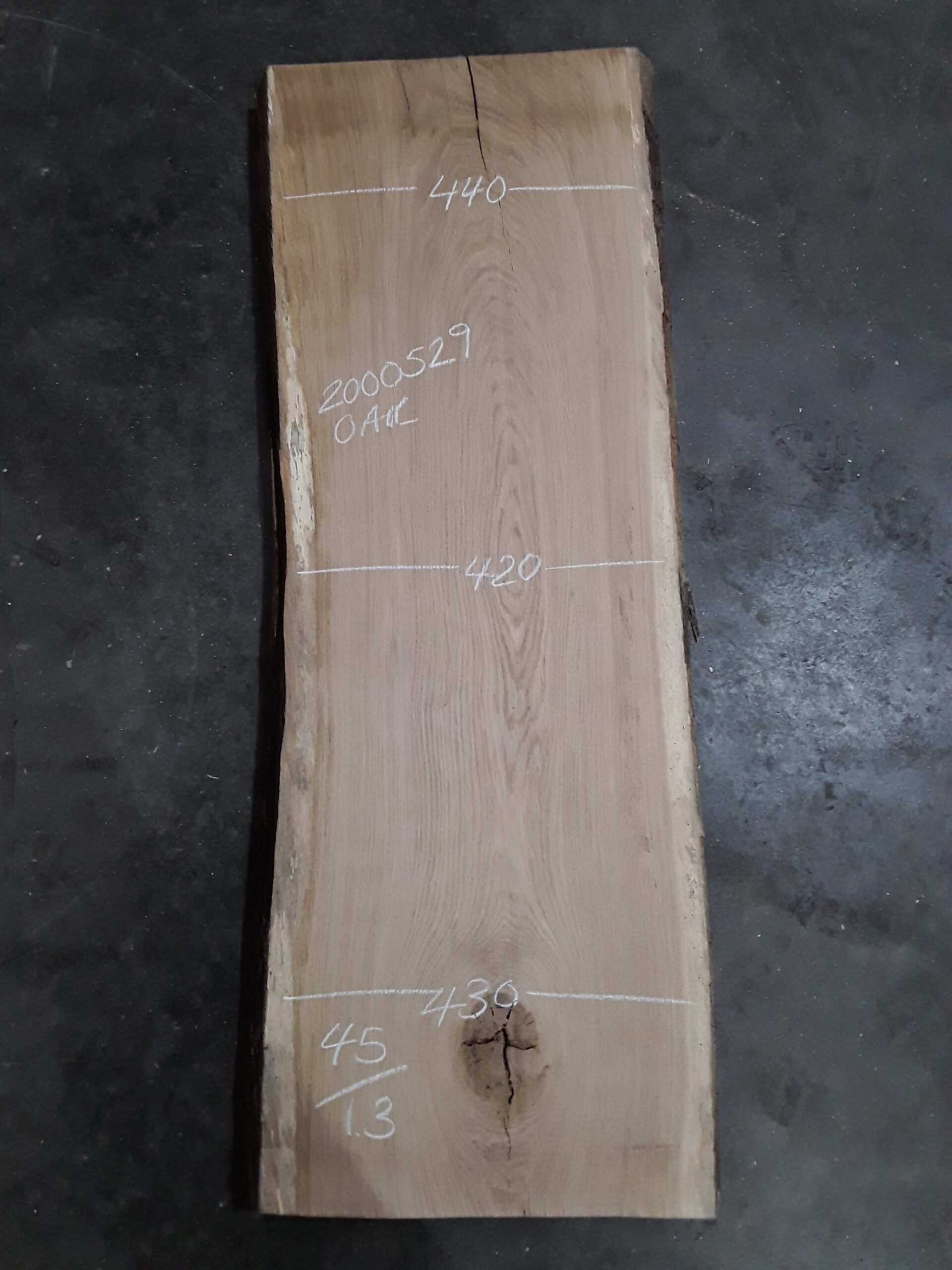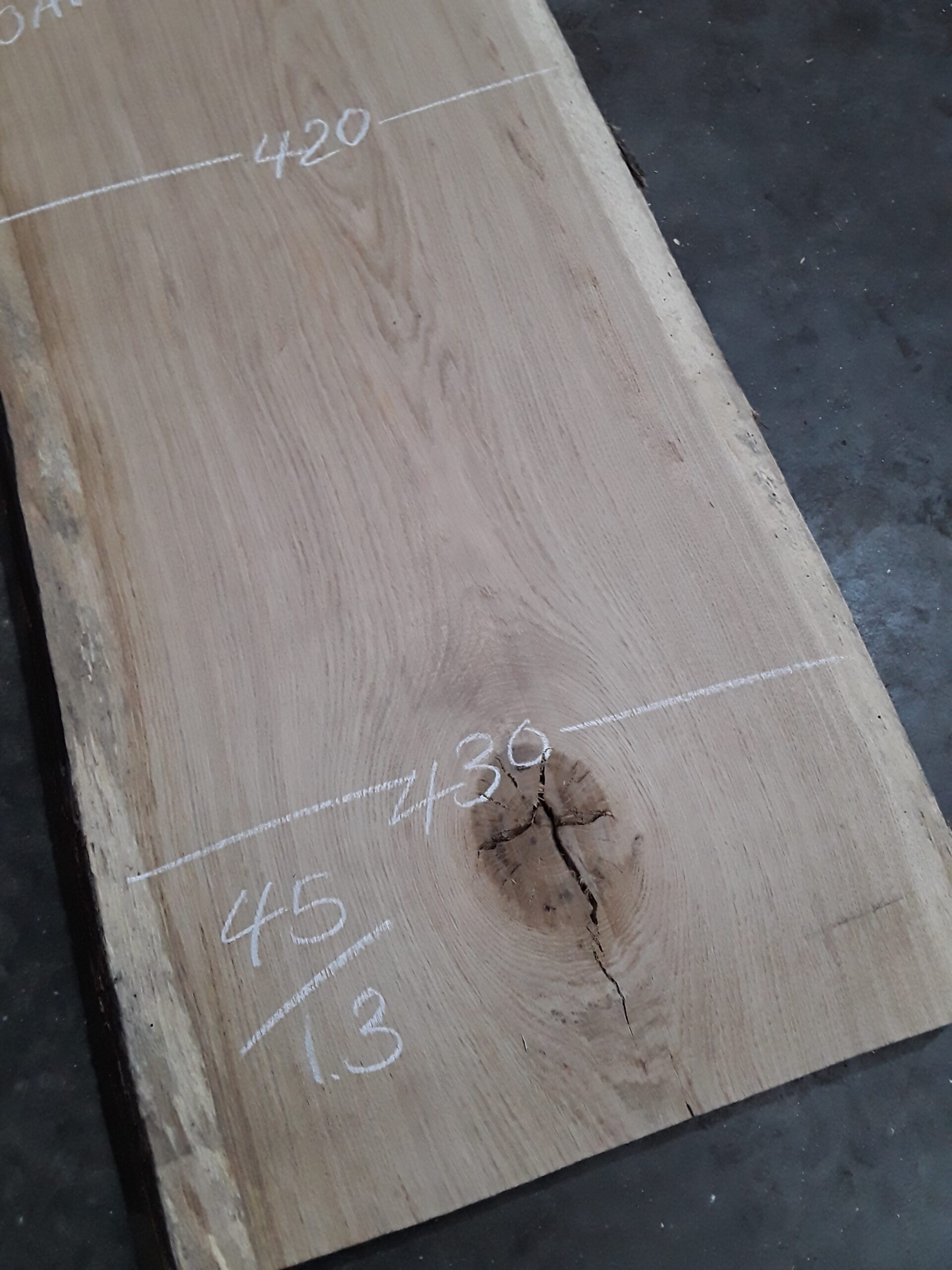 French oak, two waney edges, great colour and character, planed on both faces, slight hit and miss