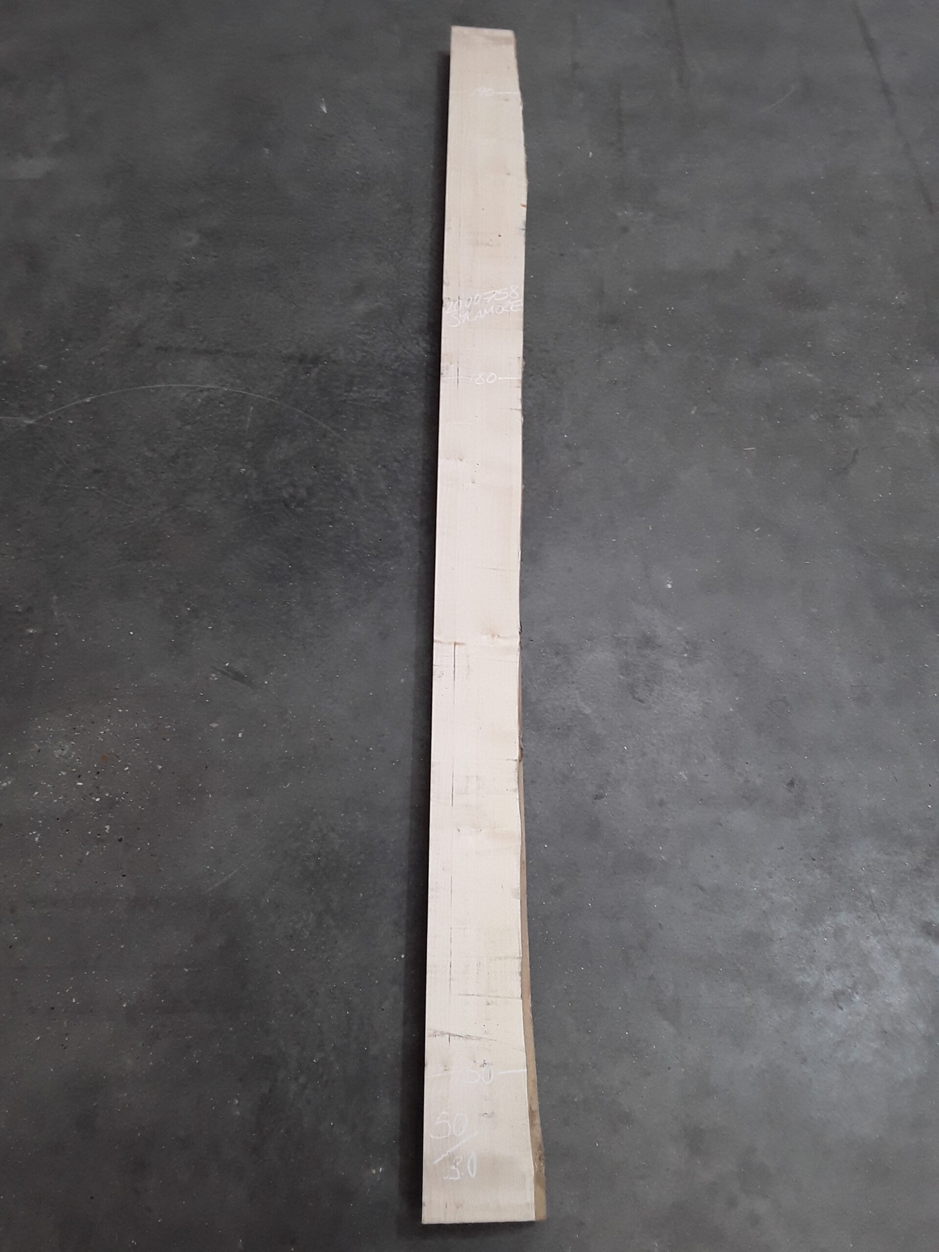 English Sycamore, one waney, one square edge, fairly straight grain, planed on both faces