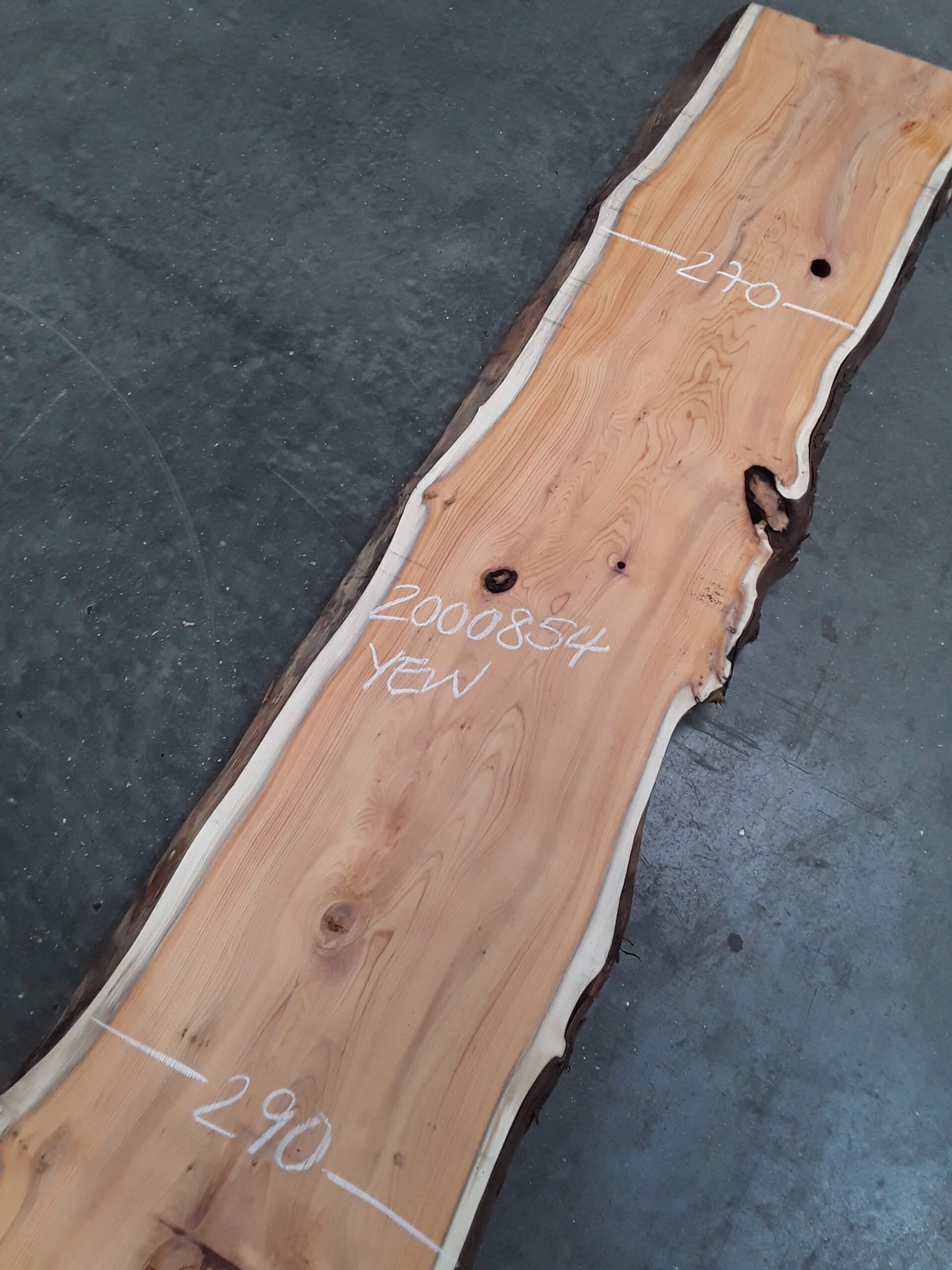 English Yew, two waney edges, great colour and grain, planed on both faces, slight hit and miss