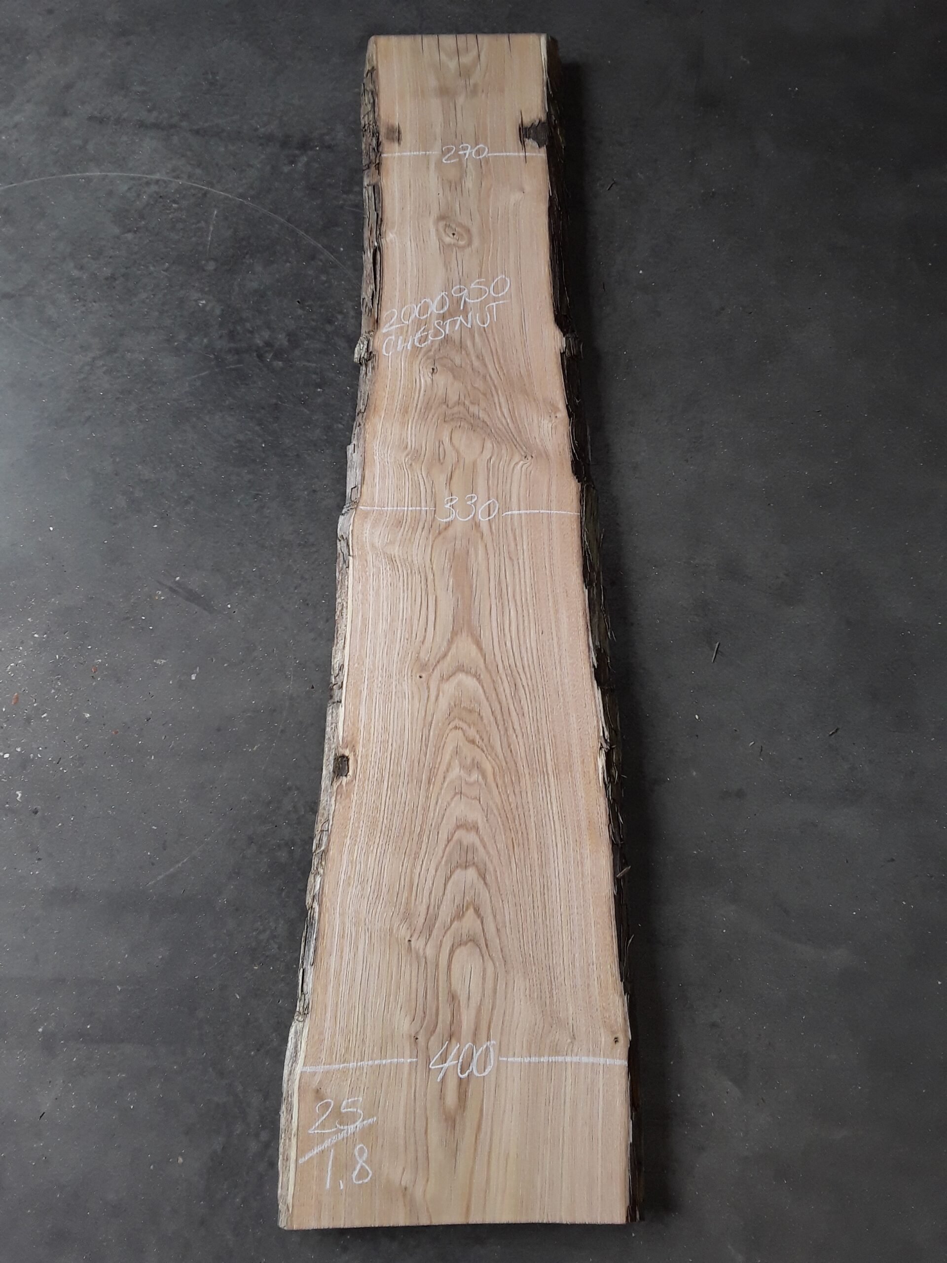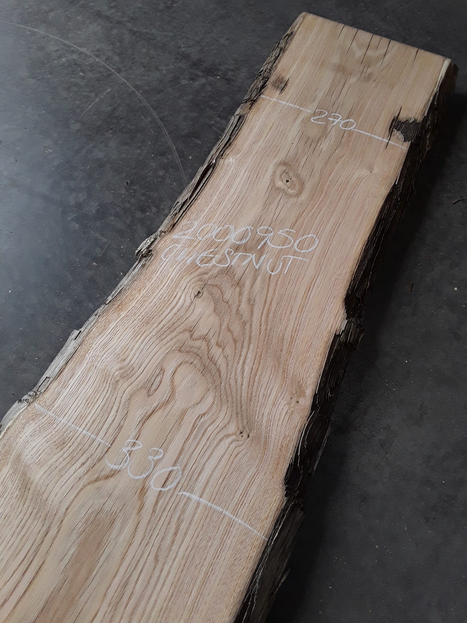European chestnut, two waney edges, great colour and grain, planed on both faces, slight hit and miss