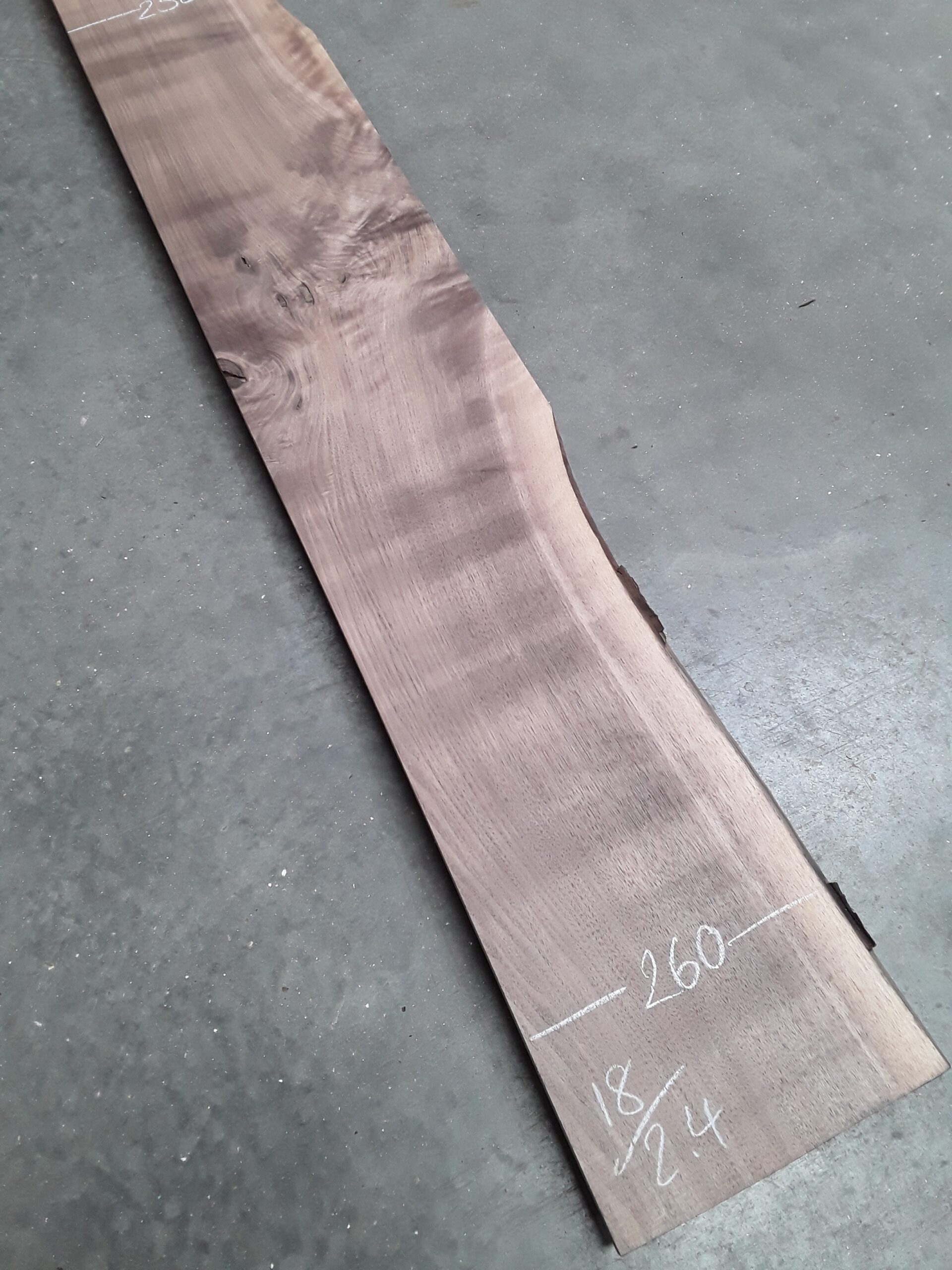 American Black Walnut, one rough square edge, one square/waney, great colour and grain, planed on both faces, slight hit and miss