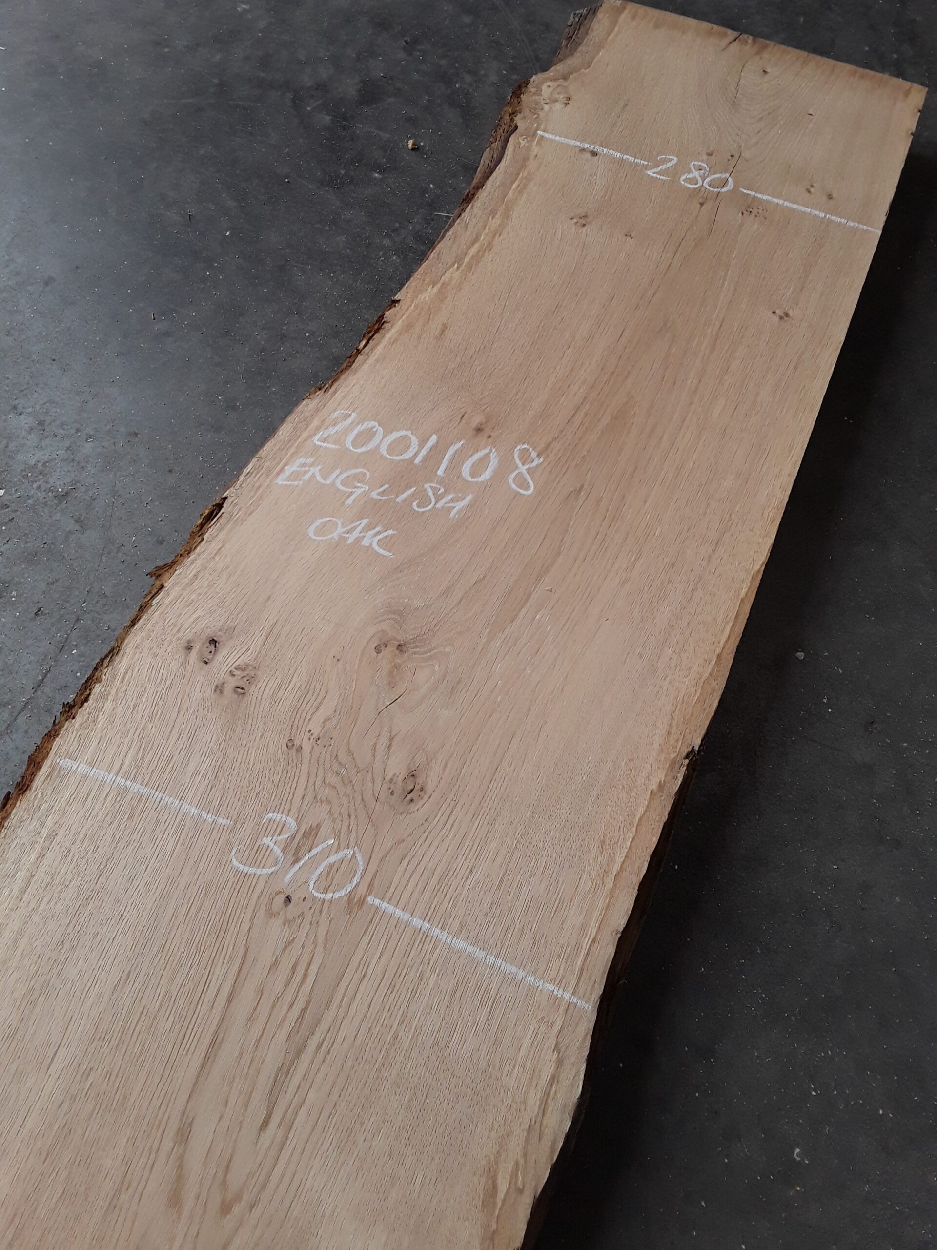 English Oak, one waney, one square/waney edge, great colour and character, planed on both faces, slight hit and miss