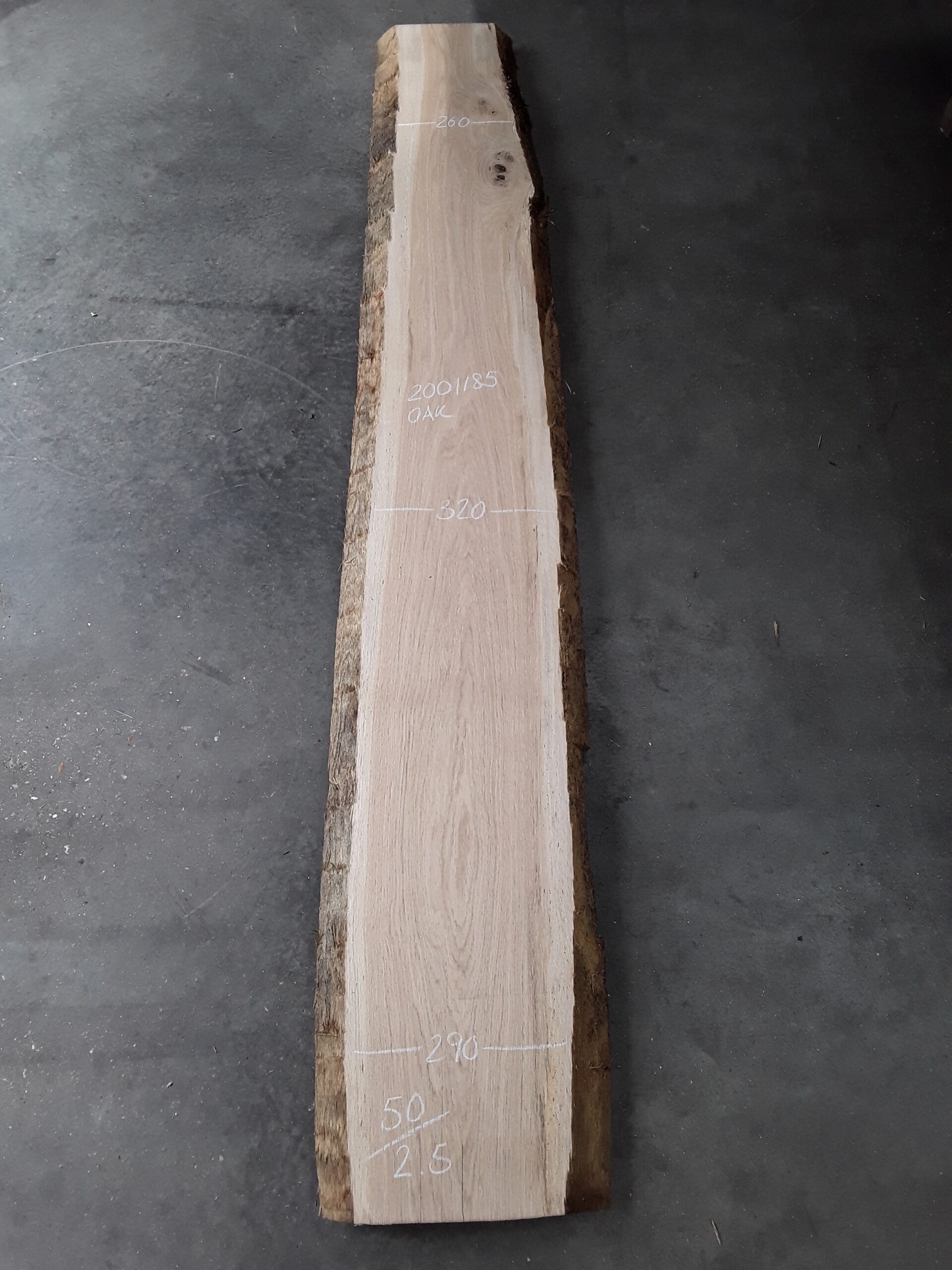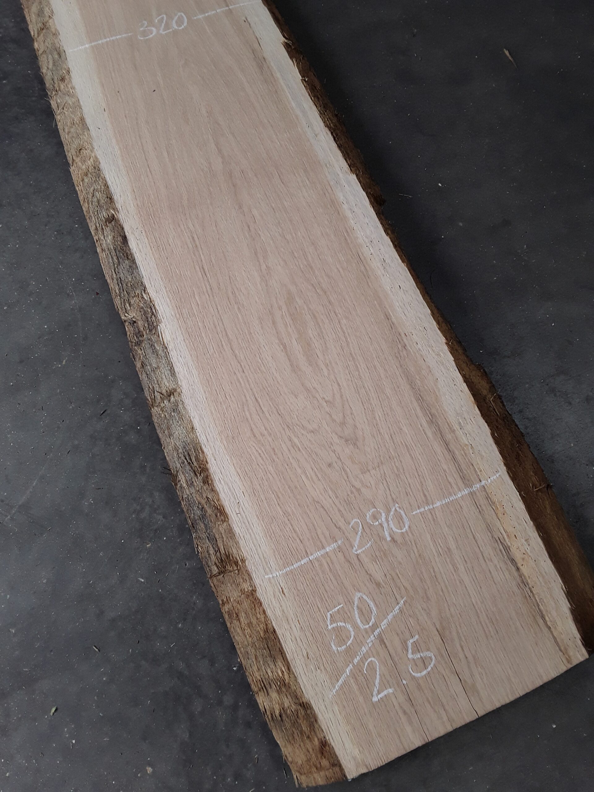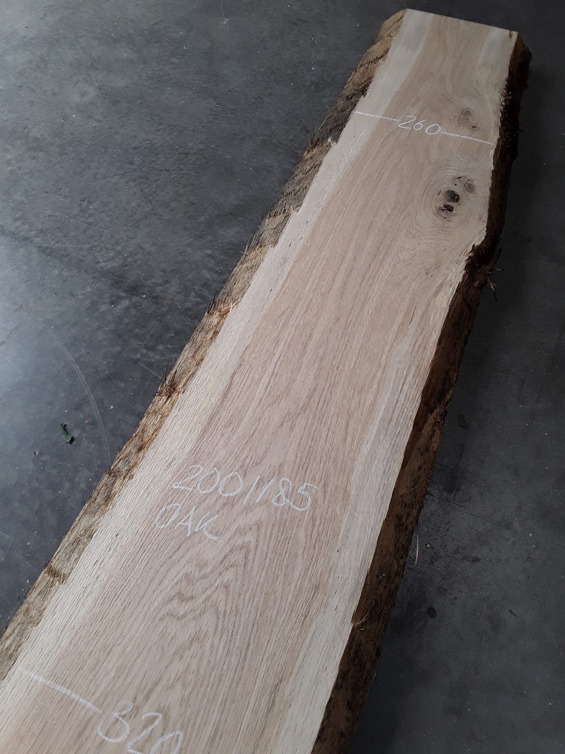 French oak, two waney edges, great colour and character, planed on both faces, slight hit and miss