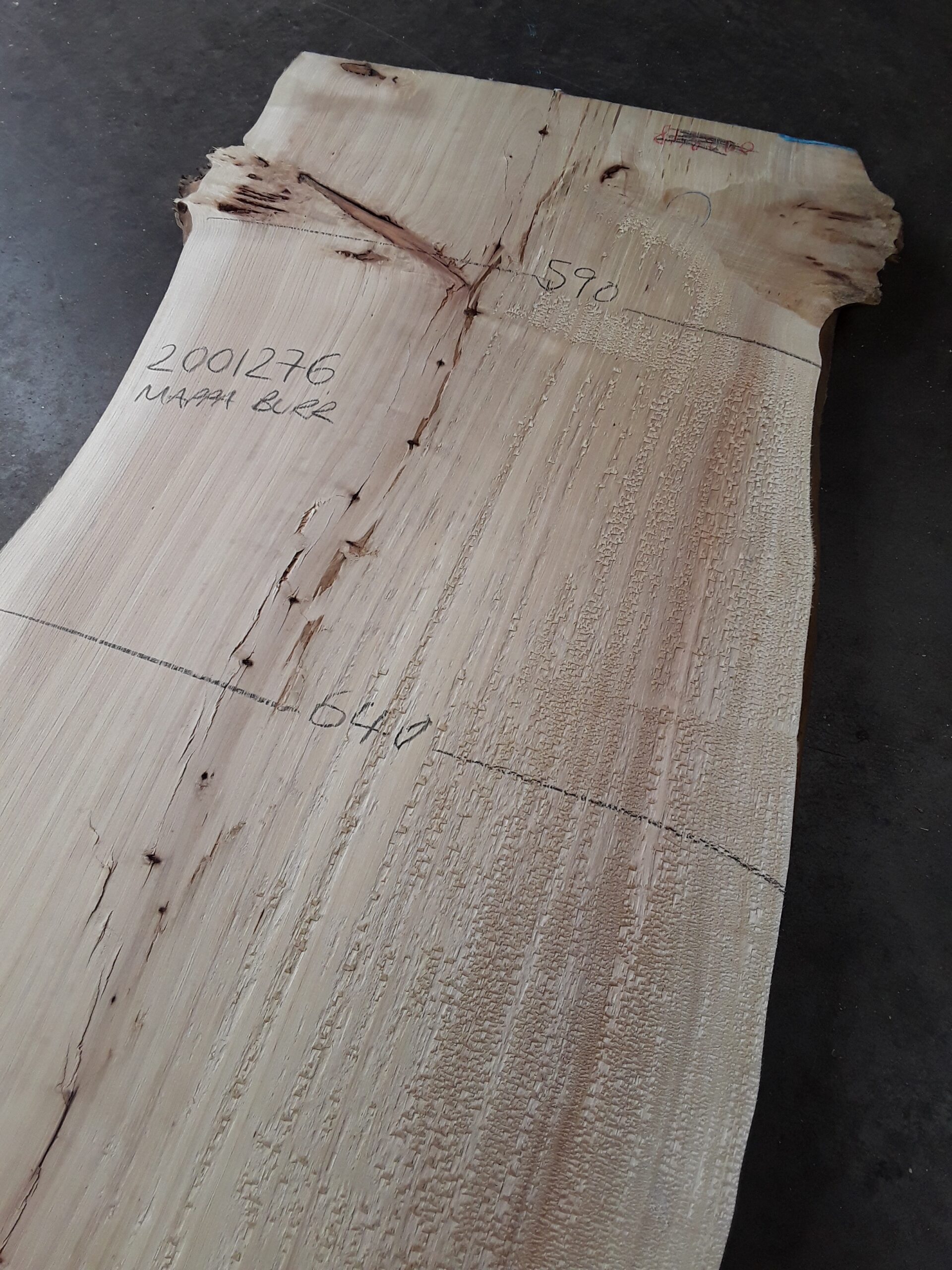 Mappa burr, two waney edges, great colour and character, planed on both faces, some hit and miss on both faces, furry areas easily sanded