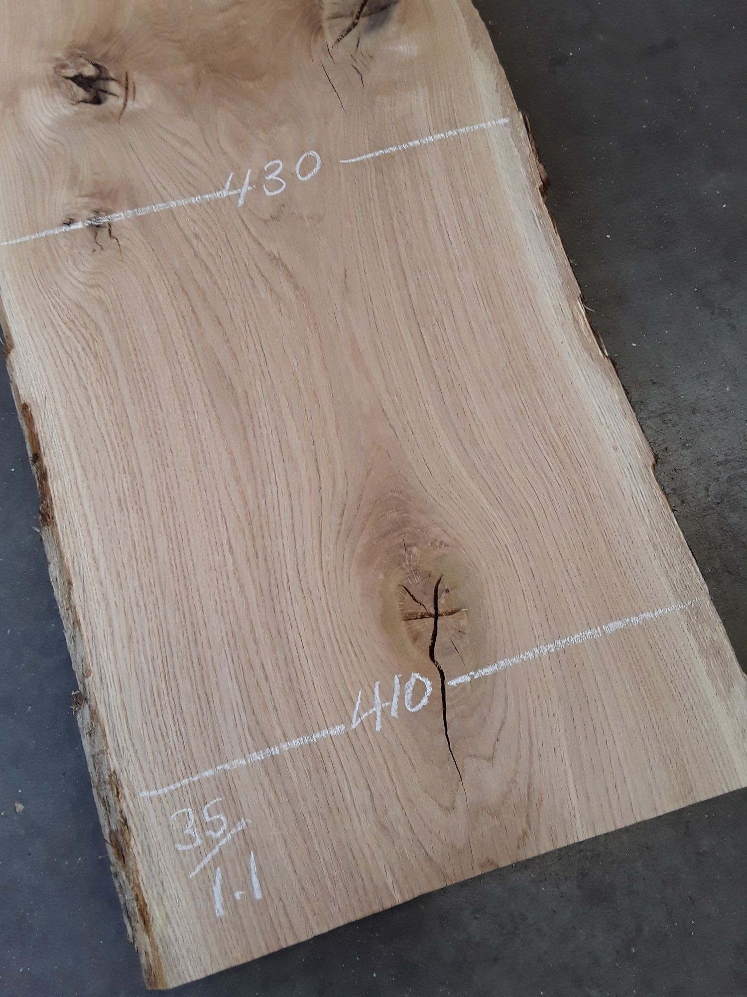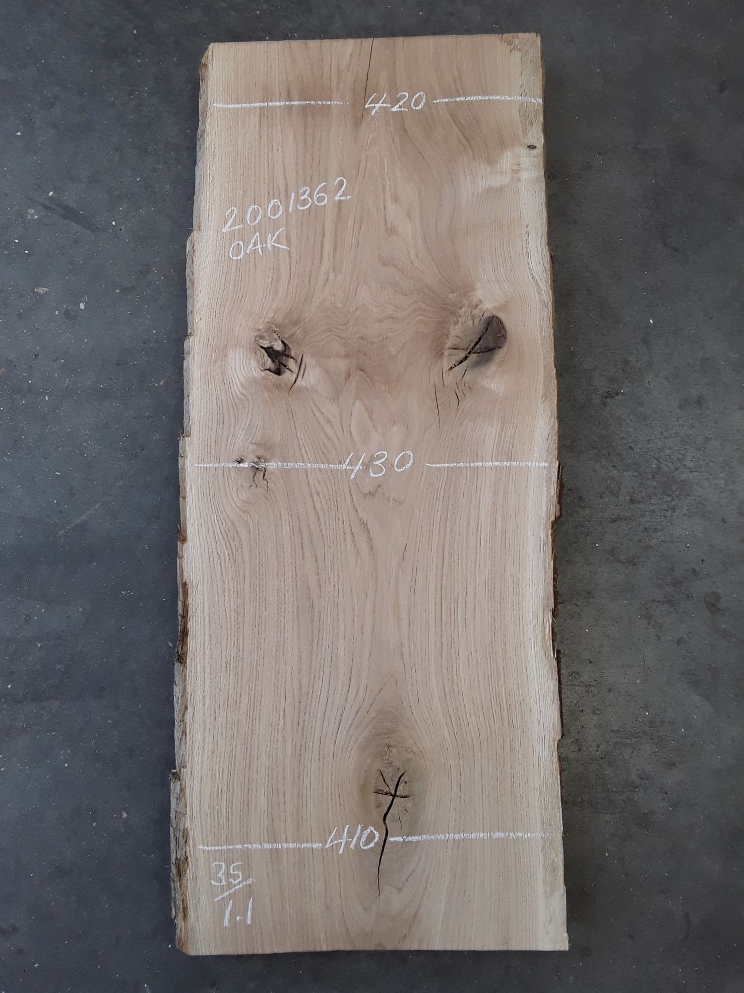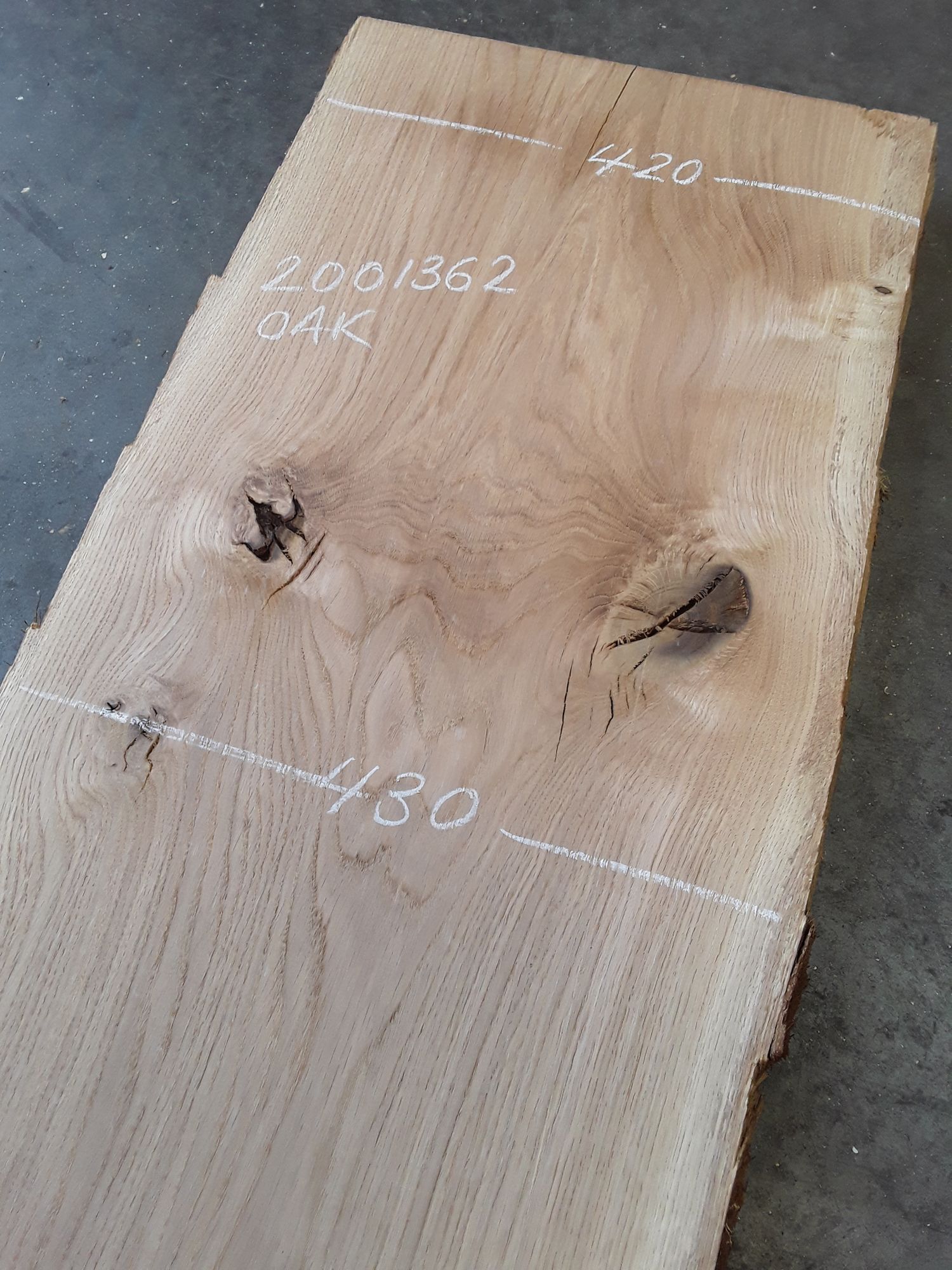 French oak, two waney edges, great colour and character, planed on both faces, slight hit and miss