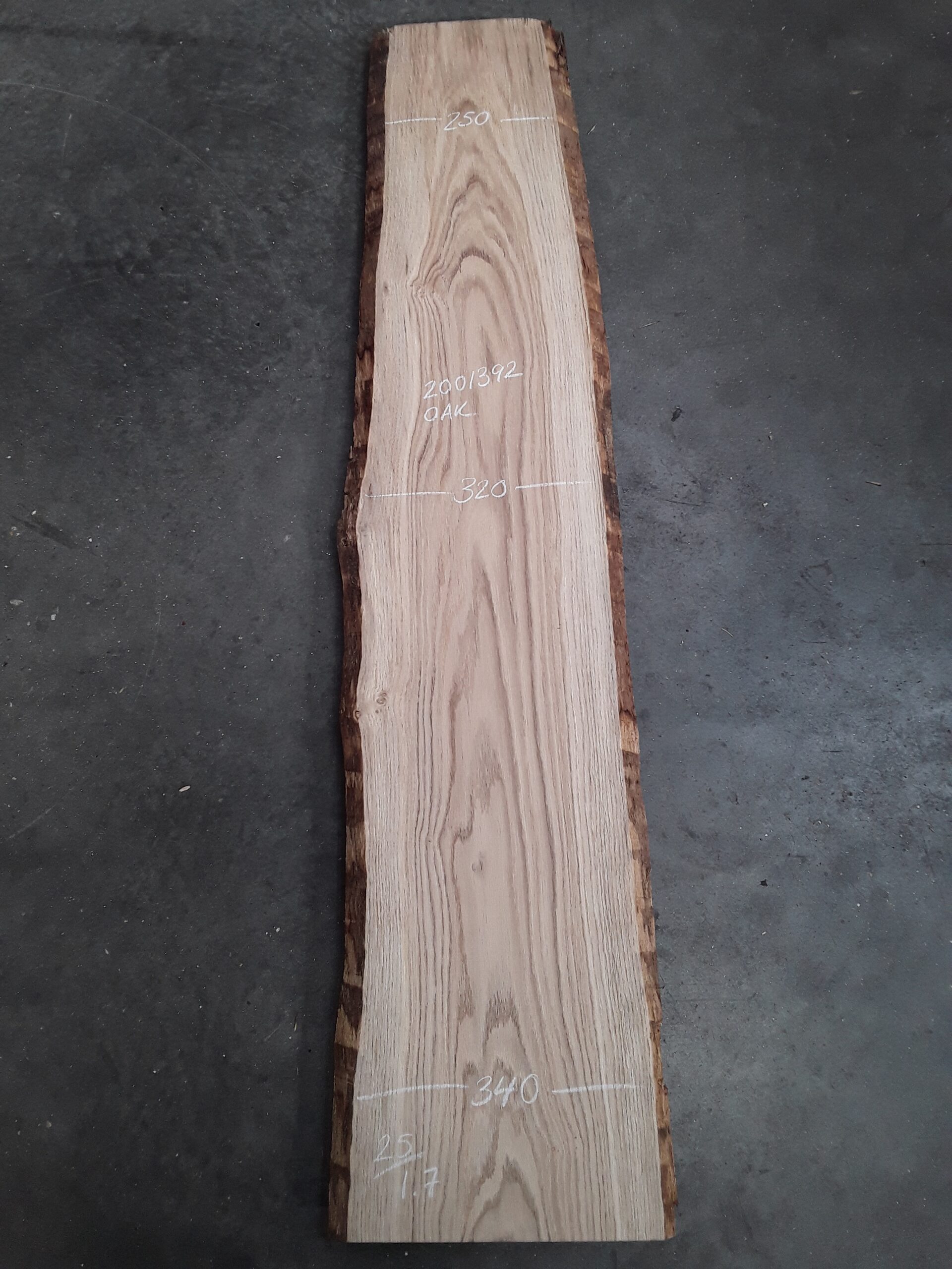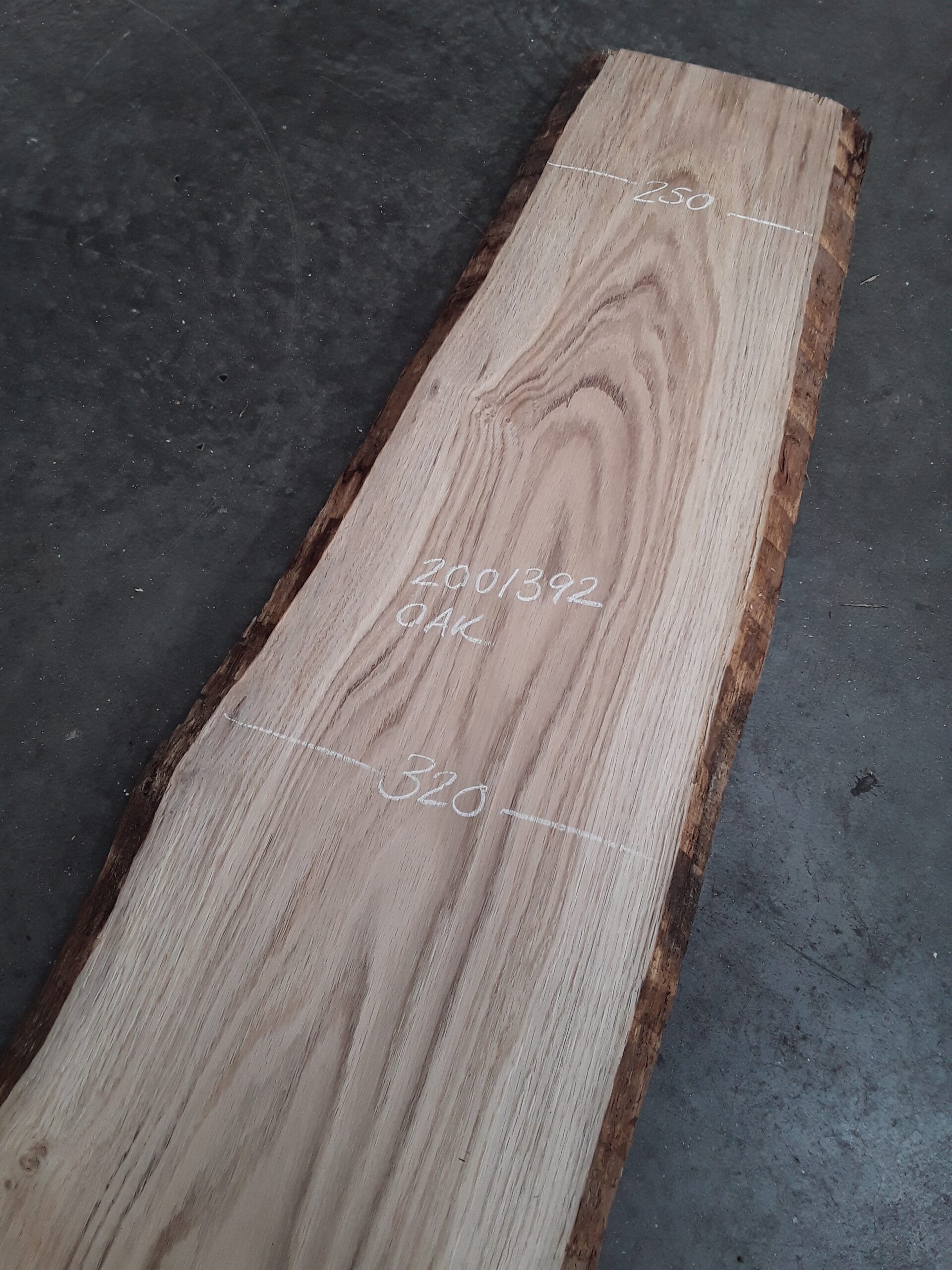 French oak, two waney edges, great character and grain, planed on both faces, slight hit and miss