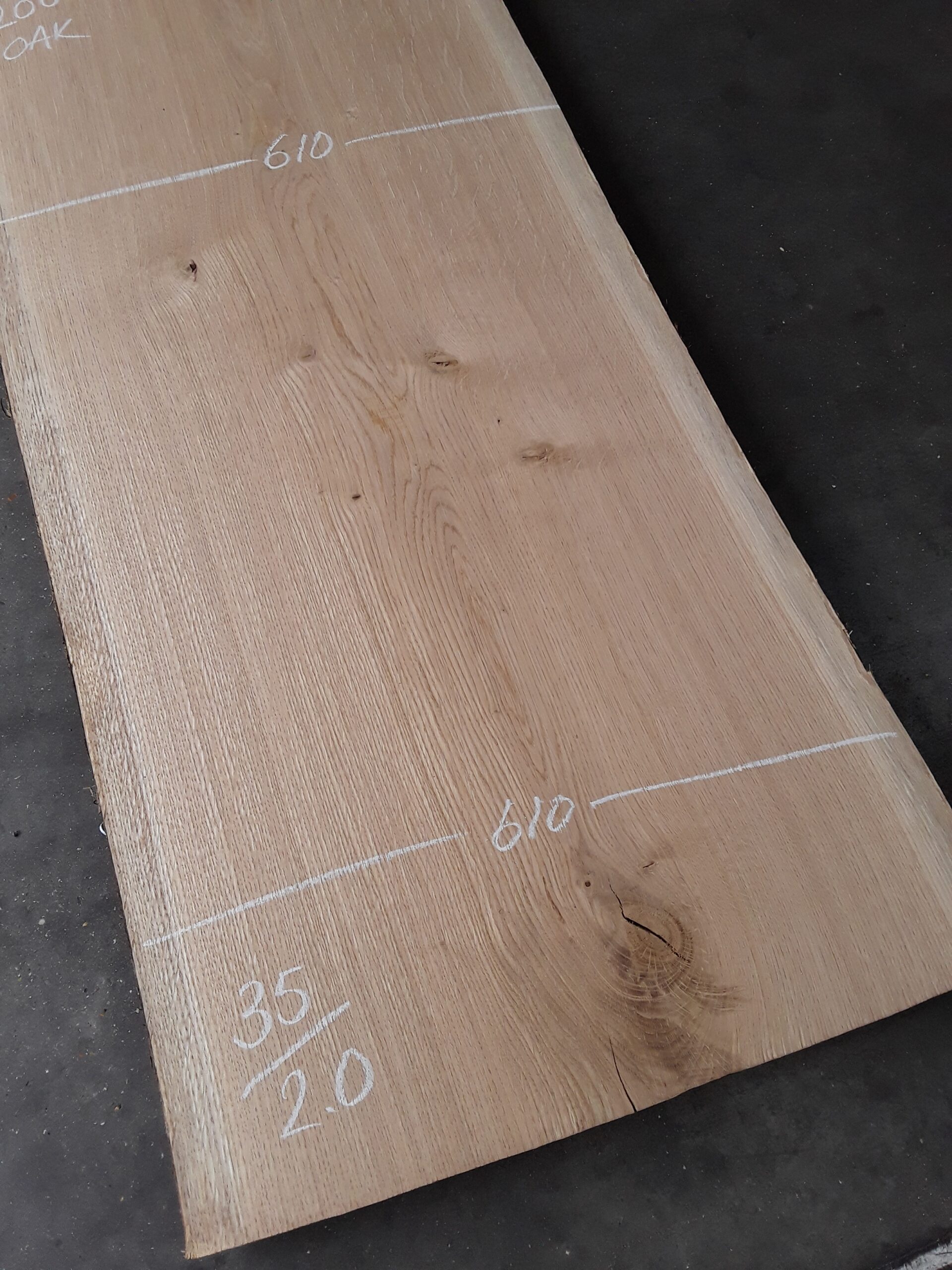 French oak, two waney edges, great colour and grain, planed on both faces, slight hit and miss