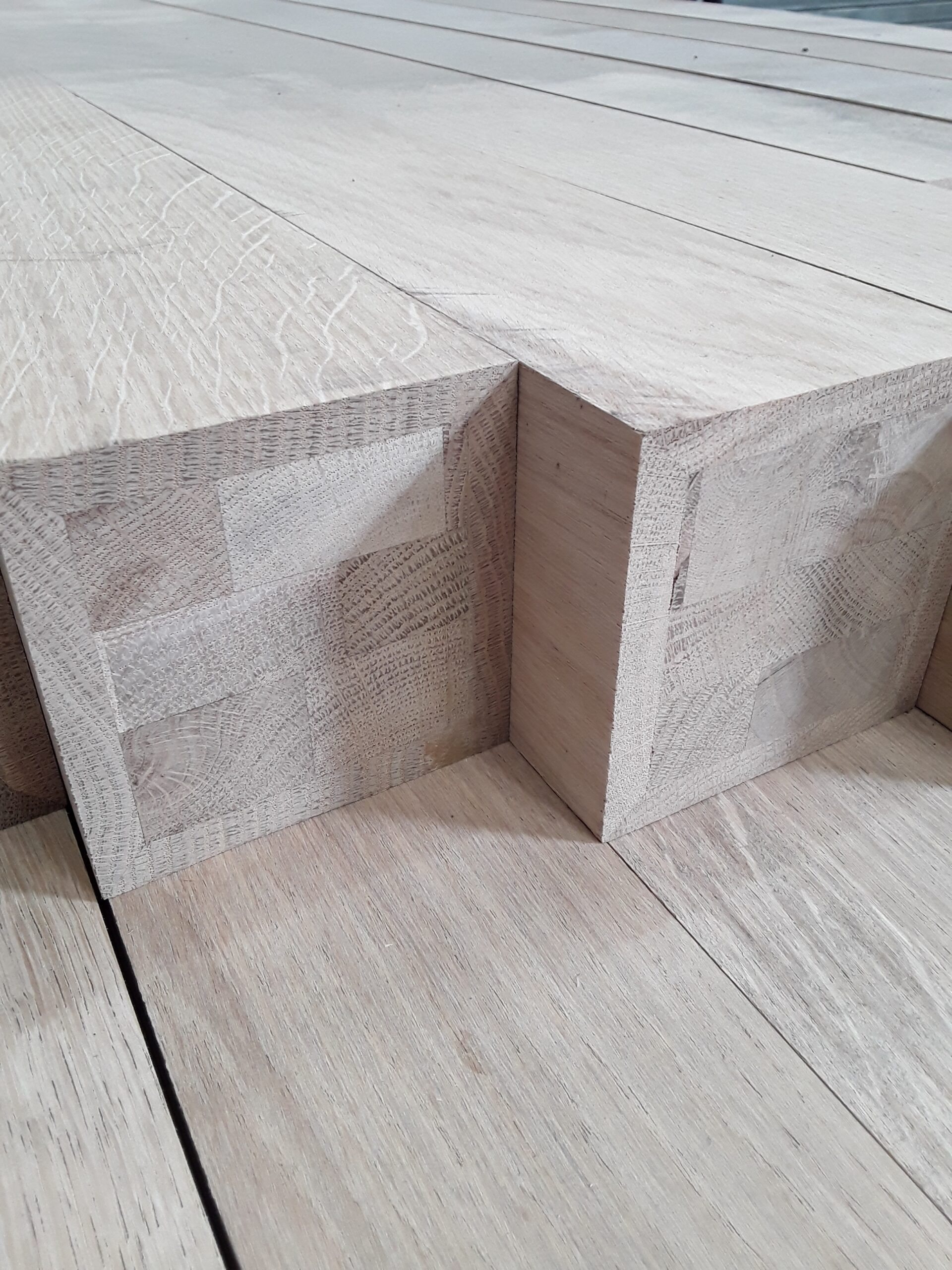 Engineered oak square, mitred faces, planed all round, lamination showing at ends