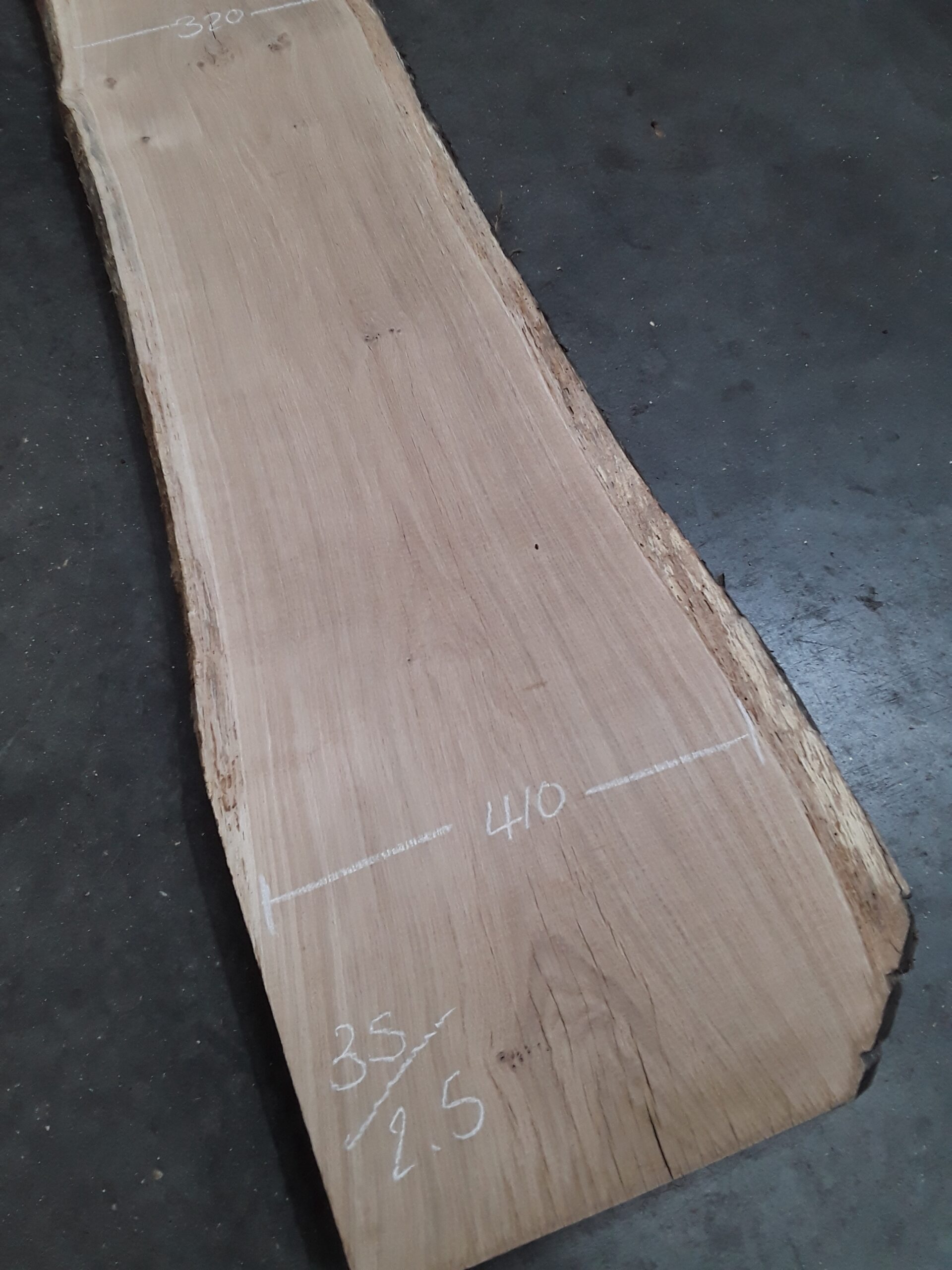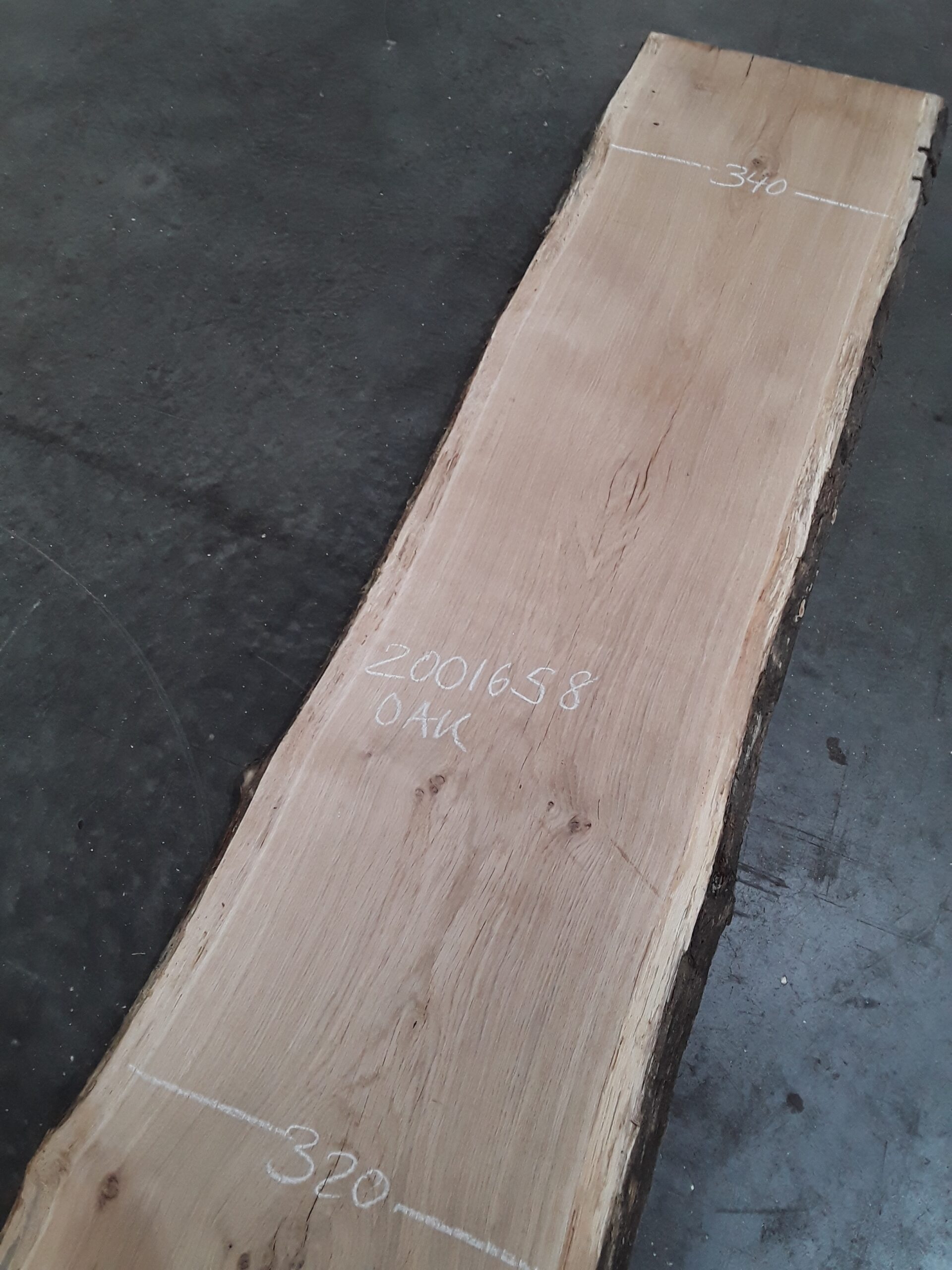 French oak, two waney edges, great character and colour, planed on both faces, slight hit and miss, redundant insect holes in sapwood