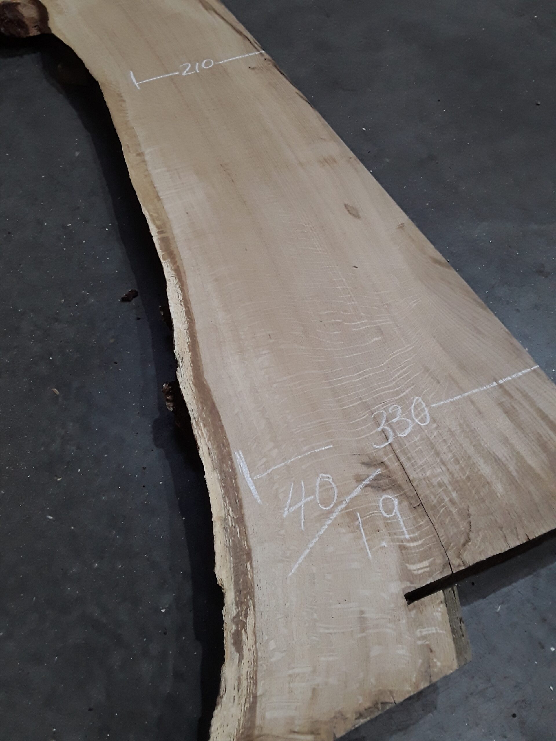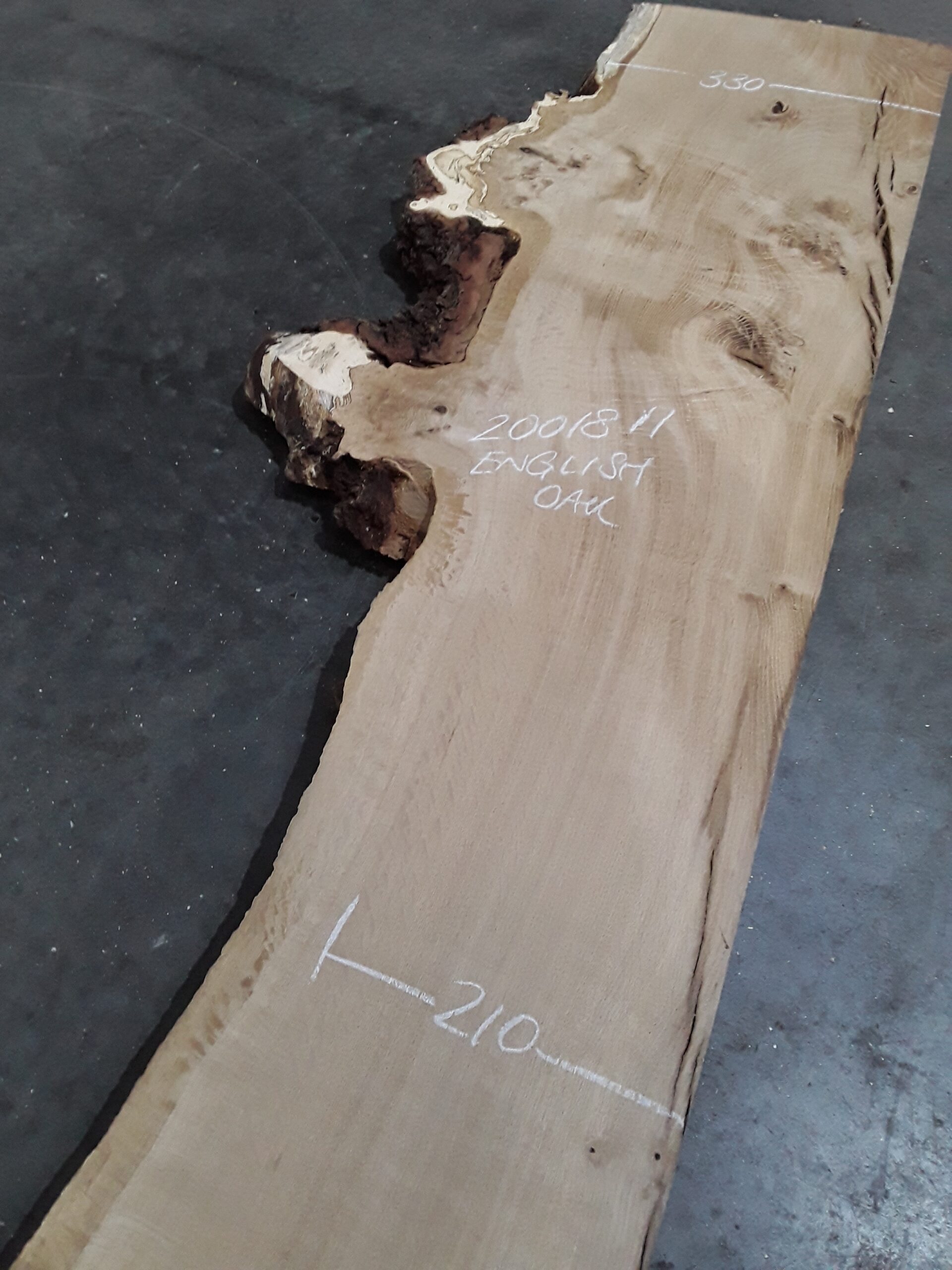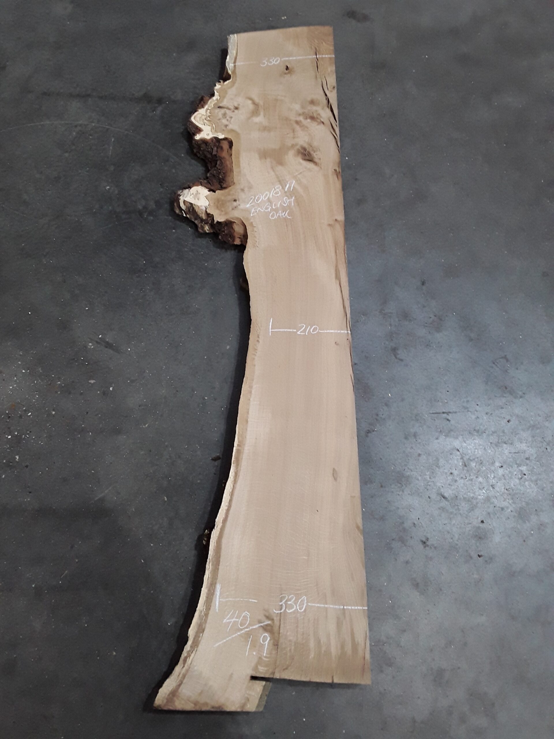 English oak, one waney, one rough square edge, great character and colour, planed on both faces, slight hit and miss